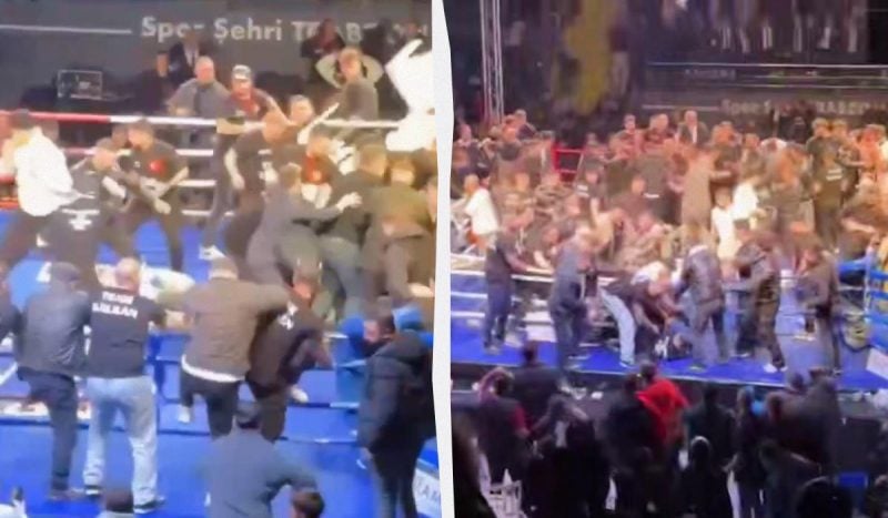 В сети появились кадры массовой драки, вспыхнувшей после поединка между россиянином Сергеем Гороховым и местным боксером Эмирханом Калканом.